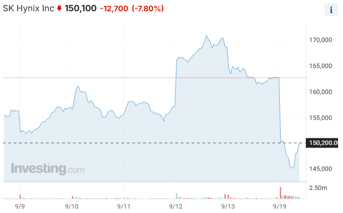 财联社9月19日讯(编辑 周子意)韩国存储芯片制造商SK海力士股价周四(9月19日)在首尔股市暴跌,领跌半导体同行。这源于华尔街大行摩根士丹利的一份报道。